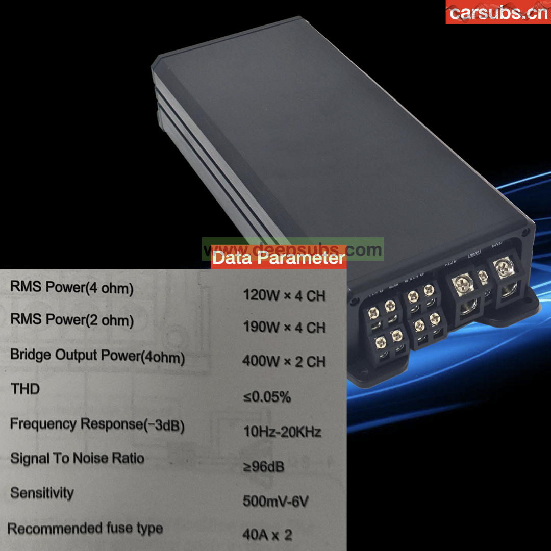 Mini Car Speaker Amplifier 4 Channels RMS 120W High Level RCA Amplifier Full Range Peak 4800W Class D Car Amplifier Monoblock Model Number F-1204D type Class D RMS 4 ohms 120W 4CH RMS 2 ohms 190W 4CH Bridge model 4 ohms 400W for subwoofer 2CH LFP 35-250 hz HPF 35-250 hz x-cross Frequency response 10-20k […]