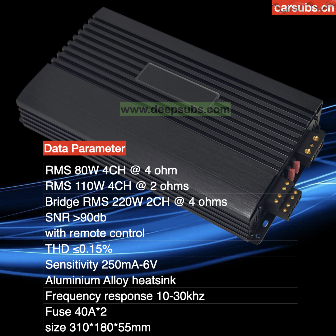 Sound Quality Car Subwoofer Speakers Amplifier RMS 80W 4 Channels Peak 6800W Car Amplifier Class AB