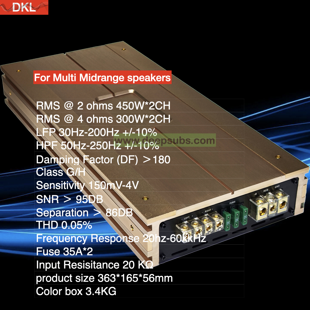 Sound Quality Car Midrange Speaker DSP Amplifier Class G/H RMS 450W 2 Channels Mono 1800W Fullrange Car Amplifier Class AB